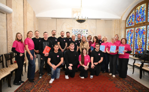 Pani Prezydent wspólnie z Panią Witkowską trzymającą kwiaty, współpracownicy, w tym Pani Skarbnik
