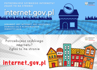 Minister Cyfryzacji uruchomił portal INTERNET.GOV.PL – usługę, dzięki której każdy może: sprawdzić, czy w wybranej lokalizacji jest dostępny szerokopasmowy internet i jacy operatorzy go oferują; zgłosić potrzebę dostępu do internetu; zgłosić pustostan, czyli budynek, w którym nie jest potrzebny dostęp do internetu; oraz dowiedzieć się o planowanych rozbudowach sieci szerokopasmowej.