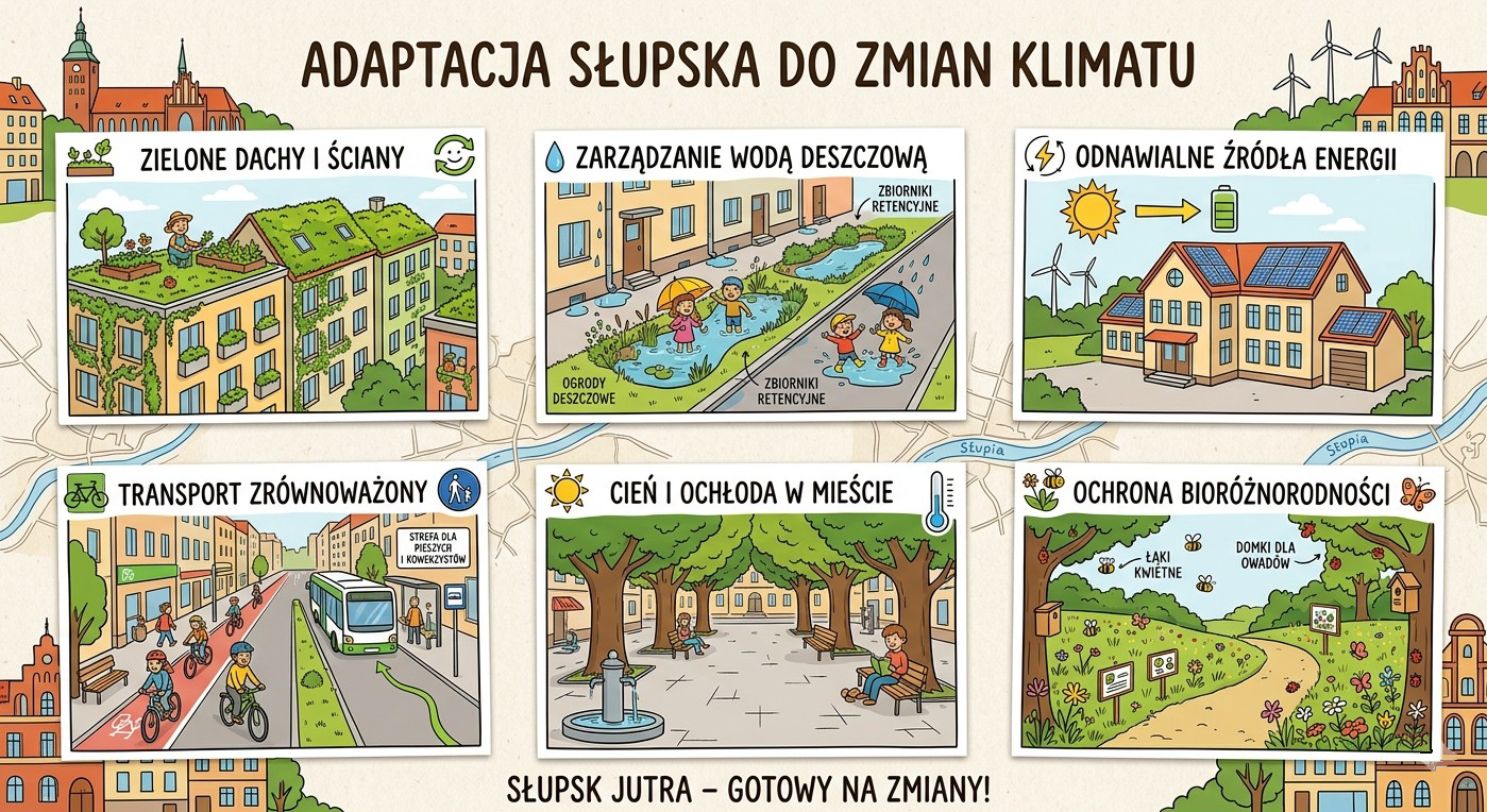 Realizując założenia polityki adaptacji do zmian klimatu Prezydent Miasta Słupska sporządził Plan Adaptacji do zmian klimatu dla Miasta Słupska, który został przyjęty uchwałą nr IV/50/19 Rady Miejskiej w dniu 30 stycznia 2019 roku, natomiast uchwałą nr XI/146/25 Rady Miejskiej w Słupsku z dnia 29 stycznia 2025 roku uznano za dokument o charakterze strategiczno-wdrożeniowym obejmujący swoim zakresem obszar miasta, mający na celu zmniejszenie podatności miasta na zmiany klimatu, w tym poprawę zdolności przystosowania miasta do zmian klimatu.
