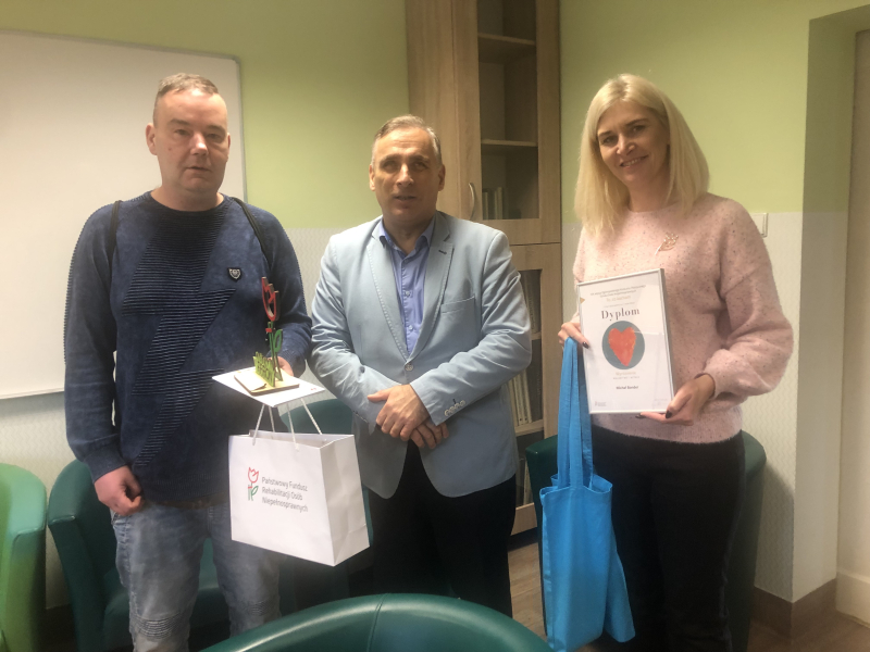 Serdecznie gratulujemy udziału wszystkim uczestnikom konkursu, a Panu Michałowi tak szczególnego wyróżnienia. Życzymy dalszych sukcesów podopiecznym Środowiskowego Domu Samopomocy.