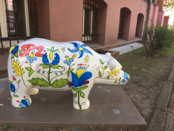 - Niedźwiadek, który studiuje. Autor: Monika Kalinowska (Matylda Art) . Uniwersytet Pomorski w Słupsku, ul. Westerplatte 64.