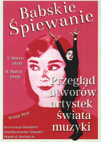 Z okazji Dnia Kobiet organizatorzy zapraszają na Babskie Śpiewanie, czyli wspólne muzykowanie i aranżacje utworów między innymi: Alicji Majewskiej "Odkryjemy miłość nieznaną", Hanny Banaszak "Pogoda ducha", "Beatlemania story" Ireny Jarockiej, Maanam, Danuta Rinn, Katarzyna Sobczyk i wiele więcej szałowych kobiet.
