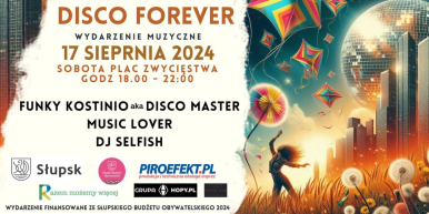 Zapraszamy na niezapomnianą imprezę DISCO FOREVER, która odbędzie się 17 sierpnia 2024 roku na Placu Zwycięstwa w Słupsku!