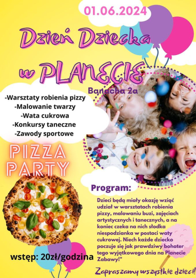 Zapraszamy serdecznie wszystkie dzieci na wyjątkową zabawę w naszej sali zabaw "Planeta" z okazji Dnia Dziecka! Przygotowaliśmy pełen dzień wypełniony radością, kreatywnością i pysznymi smakami.