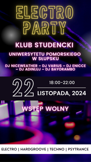Zapraszamy na wieczór pełen muzycznych wibracji z aż 5-oma DJ-ami , którzy po raz pierwszy w Słupsku zagrają dla Was na jednej imprezie i zadbają o niezapomniane emocje! Jeśli lubisz pulsujące basy, energetyczne rytmy i imprezy, które zapadają w pamięć, to wydarzenie jest właśnie dla Ciebie! 🫵