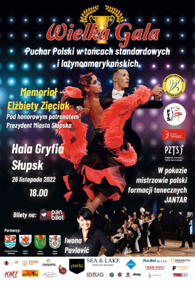 Już 26 listopada w Hali Gryfia Słupsk odbędzie się Wielka Gala - Puchar Polski FTS w tańcach standardowych i latynoamerykańskich! Wspaniałe widowisko i moc wydarzeń. A to wszystko za sprawą najlepszych polskich par tanecznych oraz pokazu Mistrzów Polski Formacji Tanecznych JANTAR.