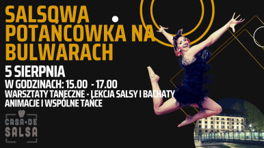 Szkoła tańca Casa de Salsa zaprasza 5 sierpnia na Pierwszą Salsową Potańcówkę na Bulwarach nad Słupią. Zaczynamy o godzinie 15.00 warsztatami tanecznymi - czyli lekcja salsy i bachaty dla wszystkich! Następnie będzie można z nami potańczyć do latynoskich rytmów!