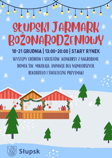 18 grudnia (czwartek) | 17:00 - otwarcie jarmarku, przekazanie Betlejemskiego Światełka Pokoju, kolędy w wykonaniu Chóru Fantazja i chóru Państwowej Szkoły Muzycznej I i II stopnia w Słupsku