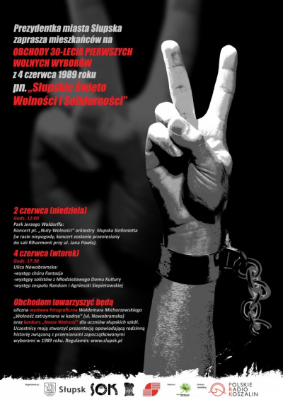 Zapraszamy mieszkanki i mieszkańców Słupska na wspólne obchody 30-lecia pierwszych częściowo wolnych wyborów – pamiętna data 4 czerwca 1989. Mamy dla Państwa różnorodną ofertę – niech każdy świętuje w sposób dla niego odpowiedni. Dla aktywnych – symboliczny bieg, dla miłośników muzyki – koncerty, dla zaangażowanych w życie publiczno-polityczne – spotkania i debaty oraz konkurs.