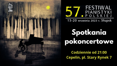 15 września rozpocznie się 57. Festiwal Pianistyki Polskiej w Słupsku, który potrwa do środy, 20 września. W trakcie festiwalu serdecznie zapraszamy na spotkania pokoncertowe, które codziennie odbywać się będą w Cepelinie. Start ok. godz. 21:00, po zakończeniu koncertów. Podczas spotkań będzie okazja podzielić się wrażeniami z koncertów z innymi uczestnikami festiwalu, spotkać muzyków, a także skosztować deserów i napojów z naszej bogatej oferty.