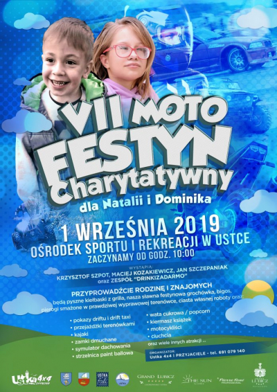 Stowarzyszenie „Ustka 4×4” i Przyjaciele zapraszają na imprezę, której celem jest pomoc i wsparcie chorych dzieci. Wydarzenie odbędzie się 1 września br. na terenie Ośrodka Sportu i Rekreacji w Ustce. Każda osoba uczestnicząca w imprezie będzie mogła skorzystać z wielu atrakcji lub wylicytować zaproszenia i upominki – pomagając w ten sposób zebrać potrzebną kwotę dla Natalki i Dominika, dla których tego dnia wszyscy działamy.