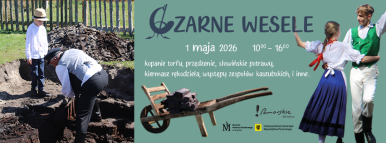 Zapraszamy na trzydziestą pierwszą już edycję Czarnego Wesela w Klukach, które jest nawiązaniem do dawnej tradycji kopania torfu na terenie słowińskim. Bo maj dla Słowińców był przede wszystkim czasem kopania torfu, który miał duże znaczenie, ponieważ był podstawowym materiałem opałowym. Pozyskiwanie torfu było wspólną pracą społeczności wiejskiej. Przy kopaniu torfu pracowały całe rodziny, nawet dzieci miały wówczas cztery dni wolne od zajęć szkolnych, by pomagać rodzicom w tej ciężkiej pracy. Toteż na łące w pobliżu muzealnych zagród można podglądać pracujących przy torfie mężczyzn, którzy ściągają darń i wierzchnią warstwę ziemi, a gdy pojawi się torf, odcinają z jego ściany równe, brunatnoczarne kostki. Te torfowe kostki kobiety układają na taczkach, by przewieźć je na nasłonecznioną przestrzeń i poukładać w piramidki do wyschnięcia.
