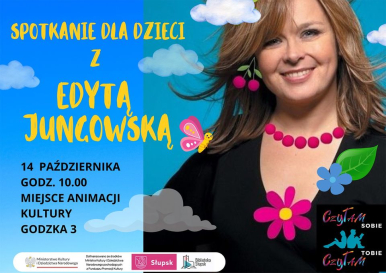 Zapraszamy na wyjątkowe spotkanie czytelnicze w ramach projektu "Czytam Sobie - Czytam Tobie" z Edytą Jungowską, które odbędzie się 14 października 2024 r. o godzinie 10:00 w Miejscu Animacji Kultury.
