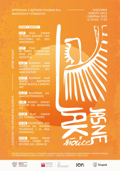 To propozycja na wakacyjne weekendy dla słupszczan - młodszych i starszych. W każdą sobotę lipca i sierpnia w przestrzeni miejskiej Słupski Ośrodek Kultury organizować będzie przyjazne spotkania z językiem, które będą kształtować twórcze, odpowiedzialne i świadome postawy wobec języka polskiego, budować kompetencje językowe oraz doskonalić umiejętności posługiwania się językiem ojczystym.Wakacyjna mobilna scena językowa zawita 9-krotnie w różnych lokalizacjach, m.in.: na placach zabaw, bulwarach nad Słupią, skwerach, w parkach, przed Domem Opieki Społecznej. Każde spotkanie trwać będzie trzy godziny, a złożą się na nie warsztaty językowe, gry i zabawy, mini wykłady o języku prowadzone przez animatorów i specjalistów, podczas których wspólnie z odbiorcami rozstrzygane będą lingwistyczne zawiłości, tropione błędy językowe - działania uwrażliwiające na wartość i piękno języka ojczystego.