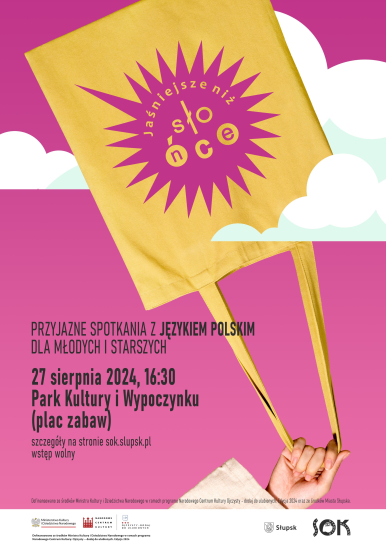 Jaśniejsze niż słońce! To propozycja na wakacyjne weekendy dla słupszczan - młodszych i starszych. W lipcu i sierpniu w przestrzeni miejskiej zorganizowane zostaną przyjazne spotkania z językiem, które kształtować będą twórcze, odpowiedzialne i świadome postawy wobec języka polskiego, zbudują kompetencje językowe oraz udoskonalą umiejętności posługiwania się językiem ojczystym.