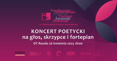 Słupski Ośrodek Kultury i Słupskie Towarzystwo Kultury Teatralnej - Teatr Rondo zapraszają na „Koncert poetycki na głos, skrzypce i fortepian”, który zakończy eliminacje rejonowe 70. Ogólopolskiego Konkursu Recytatorskiego w Słupsku.