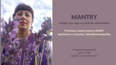 Premiera nowej mantry ANIMY oraz dyskusja, którą poprowadzi artystka i dźwiękoterapeutka o tym czym w rzeczywistości są mantry i jaki wpływ mogą wywrzeć na nasze samopoczucie i nasze życie. Na spotkaniu wysłuchacie wspólnie nowej mantry. ANIMA jest śpiewaczką, inspirującą się muzyką źródła – folklorem ukraińskim, muzyką etno, muzyką medytacyjną. Mantra została zarejestrowana w studiu Good to be heard.