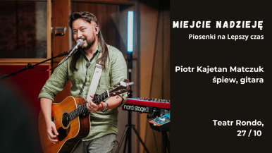 Teatr Rondo zaprasza na wyjątkowy koncert, na który złożą się piosenki doskonale znane fanom poezji oraz autorskie utwory cenionego w Polsce muzyka, Piotra Kajetana Matczuka. Usłyszycie piosenki mistrza Bułata Okudżawy oraz klasyki polskiej piosenki literackiej i utworów ze starych, dobrych polskich filmów. Optymistyczny i przyjemny nastrój gwarantowany. Z pewnością ten koncert spodoba się wszystkim, którzy cenią dobry tekst, przy akompaniamencie gitary. Bilety dostępne na kup bilecik.pl.