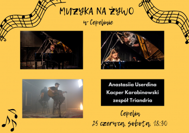 W Cepelinie zagra zespół Triandria oraz wyjątkowi soliści: Anastasiia Userdina, pochodząca z Ukrainy młoda pianistka i Kacper Karabinowski - pianista pochodzący z Ustki. Triandria - akustyczne trio gitarowe ze Słupska. Grupa eksploruje muzykę ludową. Inspiracje kulturami Bliskiego i Dalekiego Wschodu, Półwyspu Iberyjskiego i Bałkanów wybrzmiewają w autorskich instrumentalnych utworach o niestandardowej formie.