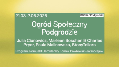 W przestrzeni BGSW / Podgrodzie prezentujemy dwie instalacje artystyczne oraz program wydarzeń z udziałem osób artystycznych i badaczy. Ogród Społeczny Podgrodzie jest przestrzenią otwartą — zapraszamy osoby z sąsiedztwa oraz wszystkich zainteresowanych do współtworzenia działań, rozmów i praktyk ogrodniczych. Do 7 czerwca 2026 roku zapraszamy zarówno do Baszty, gdzie prezentowana jest wystawa Agnieszki Brzeżańskiej Przeszłość i przyszłość przybywają jednocześnie, jak i na Podgrodzia — do wspólnego doświadczania sztuki w relacji z roślinami, ziemią i lokalnym kontekstem.