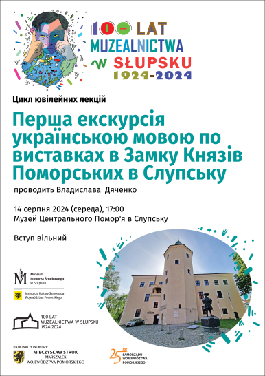 Muzeum Pomorza Środkowego w Słupsku serdecznie zaprasza na pierwsze oprowadzanie w języku ukraińskim po wystawach w Zamku Książąt Pomorskich z okazji 100 lat muzealnictwa w Słupsku - 14 sierpnia 2024 r. (środa) o godzinie 17:00.
