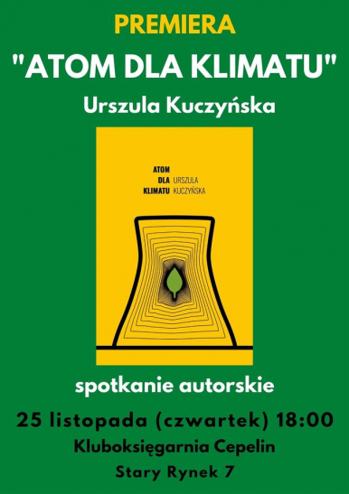 Wspólnie z Wydawnictwem Części Proste i Wydawnictwem Słowa na Wybiegu Kluboksięgarnia CEPELIN BOOKS zaprasza na bardzo ciekawe spotkanie z Urszulą Kuczyńską, autorką książki „Atom dla klimatu”. Temat bardzo ważny i na pewno będzie platformą do ciekawej dyskusji.