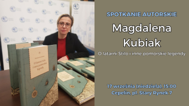 Kluboksięgarnia Cepelin zaprasza serdecznie na spotkanie autorskie z Magdaleną Kubiak, autorką książki "O latarni Stilo i inne pomorskie legendy" - 17 września o godz. 15:00.