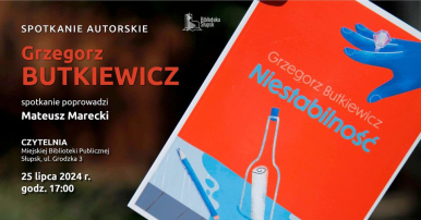 Spotkanie autorskie z Grzegorzem ButkiewiczemW czwartek, 25 lipca 2024r., o godzinie 17:00, zapraszamy do nowo wyremontowanej Czytelni MBP przy ul. Grodzkiej 3 w Słupsku, gdzie z Grzegorzem Butkiewiczem o powieści "Niestabilność" porozmawia Mateusz Marecki.