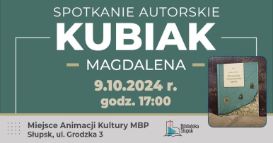 Zapraszamy 9 października 2024 r. o godzinie 17:00 do Miejsca Animacji Kultury MBP w Słupsku (ul Grodzka3) na spotkanie z Magdaleną Kubiak, laureatką konkursu literackiego „Legendy Błękitnej Krainy”, i jej książką „O Latarni Stilo i inne pomorskie legendy”.