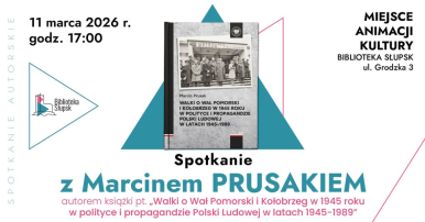 Biblioteka „Pomerania” – filia MBP w Słupsku zaprasza na spotkanie z Marcinem Prusakiem autorem książki pt. „Walki o Wał Pomorski i Kołobrzeg w 1945 roku w polityce i propagandzie Polski Ludowej w latach 1945-1989”. Spotkanie odbędzie się 11 marca godz. 17:00 w Miejscu Animacji Kultury MBP przy ul. Grodzkiej 3 w Słupsku.