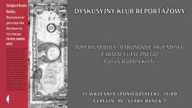 We wrześniu podczas Dyskusyjnego Klubu Reportażowego omówimy książkę "Imperium bólu. Baronowie przemysłu farmaceutycznego" autorstwa Patricka Radden Keefe'a. Reportaż, który wciąga niczym kolejny sezon "Sukcesji"!