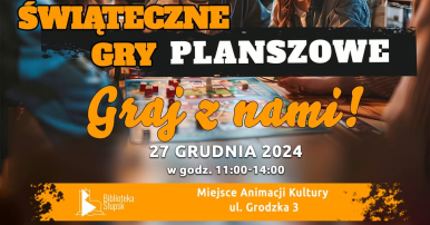 Zapraszamy serdecznie na ostatnie w tym roku Gry Planszowe, w wydaniu świątecznym. Tradycyjnie spotykamy się w Miejscu Animacji Kultury.