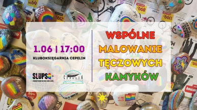 Organizatorzy chcą, żeby o Słupskim Marszu Równości 2024, który przejdzie ulicami Słupska 15 czerwca, stało się bardzo głośno, dlatego zapraszają Was do wspólnego malowania tęczowych kamyków, które rozpromują równie kolorowy Marsz. Spotykajcie się 1 czerwca (sobota), w Dzień Dziecka, o godz. 17:00 przy wielkim stole w kluboksięgarni Cepelin. Po malowaniu pójdziecie na spacer, by ukryć kamyki na słupskich bulwarach i w innych uczęszczanych miejscach Słupska.