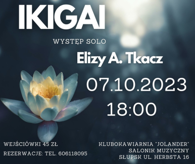 Jak muzyka wpływa na emocje i myśli? Czy wybrać krętą drogę, czy prostą? Podczas koncertu, przy muzyce na żywo każdy będzie mógł zdefiniować swoje IKIGAI. Eliza A. Tkacz zagra z akompaniamentem pianina. Zaśpiewa w języku polskim i francuskim utwory z albumu "Itaka" oraz nowe kompozycje z gatunku marzycielski pop. Koncert jest opowieścią słowno-muzyczną o podróżach, dojrzewaniu i szukaniu szczęścia. Do historii wkrada się nostalgia, ale artystka zachęca do optymistycznego patrzenia w przyszłość. Zarówno zwolennicy delikatnych wokaliz, jak i emocjonalnych refrenów znajdą przestrzeń muzyczną dla siebie.