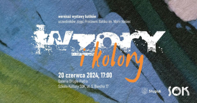 20 czerwca 2024 r. o godz. 17.00 w Galerii Drugie Piętro w Szkole Kultury SOK ul. S. Banacha 17 odbędzie się otwarcie wystawy prac uczestników zajęć Pracowni Batiku im. Marii Hasiec.
