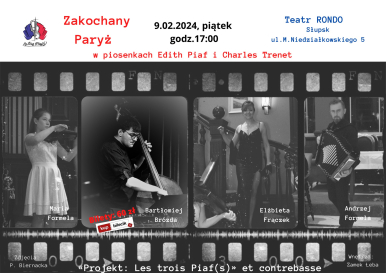 W wyniku połączenia historii Edith Piaf i Charles Trénet powstał wzruszający, francuski wieczór, opowiadający o różnych odcieniach miłości, w opiewających radość życia, piosenkach jakie tworzył i śpiewał Charles, a także emocjonalnych i przejmujących piosenkach Edith. Piękna, jedyna w swoim rodzaju, francuska muzyka, w aranżacjach Andrzeja Formeli, na akordeon, skrzypce i kontrabas oraz teksty w języku francuskim, które płyną jak żadne inne, wzbogacone o polskie wprowadzenie, pozwoli przenieść się na paryskie ulice, poczuć ich magię, która pozostaje niezmienna i uwodzi zawsze z tą samą siłą.