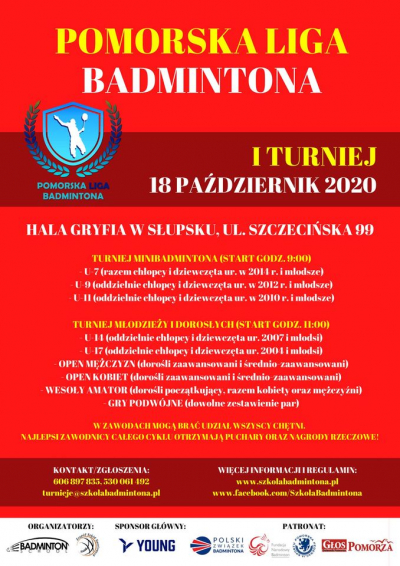 Krystian Warcholak. e-mail: turnieje@szkolabadmintona.pl, tel. 530 061 492