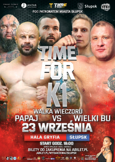 "TK1 Czyli Time For K1" to spektakularna impreza sportowa, która koncentruje się na sztukach walki K1. 10 walk w formule K1 pod patronatem Polskiego Związku Kickboxingu. Walka Wieczoru: PAPAJ vs WIELKI BU.