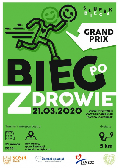 „BIEG PO ZDROWIE” odbędzie się 21 marca w Parku Kultury, Sportu i Rekreacji i jest to wspólna inicjatywa Słupskiego Ośrodka Sportu i Rekreacji w Słupsku oraz Samodzielnego Publicznego Miejskiego Zakładu Opieki Zdrowotnej w Słupsku.