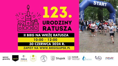 W ramach obchodów jubileuszu 123 Urodzin Ratusza w Słupsku wspólnie z Fundacją Wspierania Inicjatyw Niekonwencjonalnych "Sub Ventum" i Dariuszem Kloskowskim zapraszamy wszystkich miłośników biegania do udziału w II Biegu na Wieżę Ratusza.