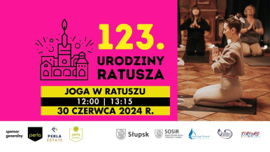 W ramach obchodów jubileuszu 123 Urodzin Ratusza w Słupsku zapraszamy wszystkich pasjonatów jogi, tych bardziej i mniej zaawansowanych do udziału w bezpłatnej sesji jogi, która odbędzie się w zabytkowych wnętrzach Ratusza .