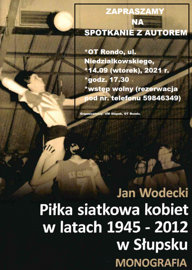 Serdecznie zapraszamy na spotkanie z Janem Wodeckim, autorem książki "Piłka siatkowa kobiet w latach 1945-2012 w Słupsku". Odbędzie się ono w OT Rondo przy ul. Niedziałkowskiego, 14 września (wtorek), o godz. 17.30. Wstęp jest wolny, ale obowiązuje wcześniejsza rezerwacja pod nr. telefonu: 598426349. Zapraszamy kibiców, którzy pamiętają złote lata słupskiej siatkówki, zapraszamy sympatyków sportu słupskiego.