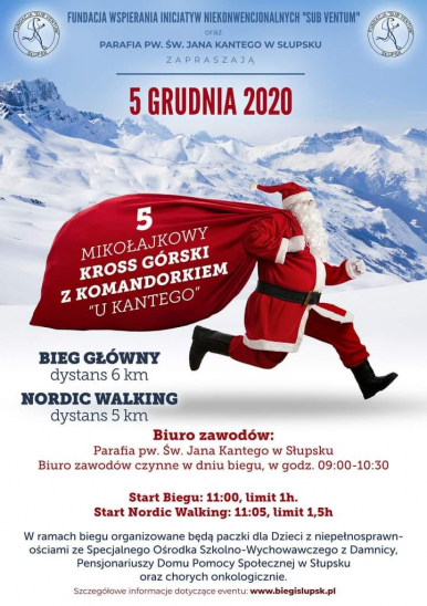 "V Mikołajkowy Kross Górski z Komandorkiem u Kantego" to cykliczna impreza sportowo-charytatywna połączona z akcją organizowania paczek dla potrzebujących Dzieci, Seniorów oraz chorych onkologicznie.